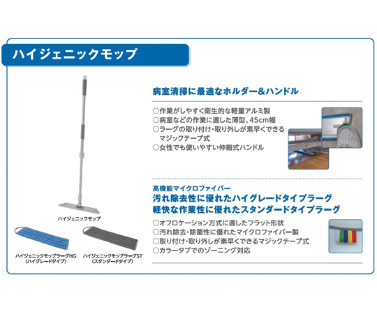 ●高機能マイクロファイバー製フラットモップ●カラータブでゾーニング対応●汚れ除去性に優れたハイグレードタイプ●サイズ:135mm×500(460)mm