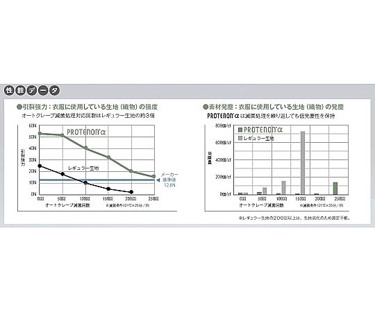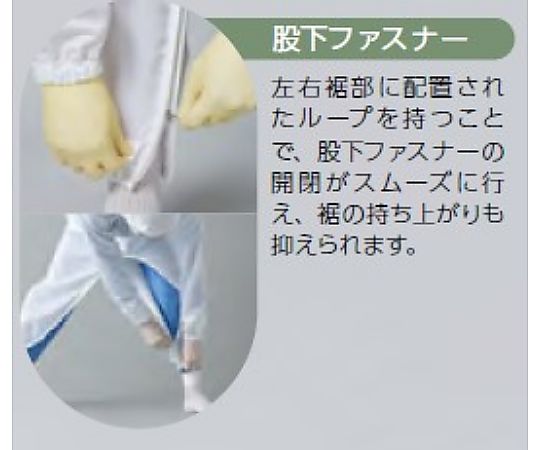 ●医薬品製造現場の無菌ゾーンでご使用いただけるオートクレーブ滅菌対応のフード・マスク一体型股下ファスナー仕様の防塵服です。●防塵性と耐久性を兼ね備えた機能性素材を使用しており、オートクレーブ滅菌処理後も加水分解による繊維強度劣化が起きにくくなっています。●オートクレーブ滅菌対応回数はレギュラー生地の約3倍と耐久性に優れています。●着脱用ファスナーを股下に配置することにより、着脱時に衣服の床面接触がなく、塵埃や雑菌の付着を防ぎます。●手袋、ブーツは別売りです。●【推奨コーディネート】ブーツ:602100(品番:4-6158-01~07)、602104(品番:4-6160-01~07)●使用環境(目安):クラス100~1000●色:白●材質:ポリエステル100%(導電糸入り)●導電糸5mmストライプ(黒)●総丈(cm):164●バスト(cm):128●ウエスト(cm):96~120●裄丈(cm):95●股下(cm):69●フード・マスク一体型●フード後頭部ゴム絞り●股下ファスナー●ウエストゴム絞り●レーザー裁断採用●サイズ:3L●男女兼用●※付帯品(手袋、靴)は別売りです。