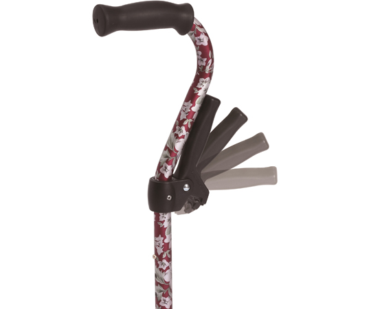 ●立ち座りがしやすい補助グリップ付四点杖●四点で支えるため接地面が広くなり、安定した歩行をサポートします。●補助グリップを使うと立ち座り時に両手を使うことができ、腰・膝への負担が軽減されます。●材質:グリップ/エラストマー、シャフト/アルミニウム、脚部/アルミニウム、先ゴム/合成ゴム、補助グリップ/66ナイロン●サイズ:約64.0~81.5cm8段階調節(2.5cmピッチ)●脚部サイズ:幅15.0×奥行22.0×高さ8.0cm●重量:約680g