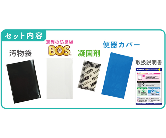 ●優れた防臭力で臭わない。●菌も漏らさず衛生的。袋も二重で安心。●設置も後処理も簡単。1人ですぐに使える。●今あるトイレがすぐに使える。水や電気がなくても大丈夫。●非常持出し袋や車内の備蓄に●コンパクトで備蓄に便利!●「臭わない袋BOS」がセットされた携帯トイレです。●すぐに廃棄が出来ない環境下でも臭わないため、安心・快適です。●※防臭袋BOSの防臭性能は大変優れていますが、完全に防ぐものではありません。バケツなどに密閉すると、わずかに漏れ出る臭いがバケツ内に留まり、臭いを感じることがあります。●セット内容:防臭袋BOS(白)×15枚(35×50cmマチ付)、凝固剤×15袋(1袋あたり10g)、汚物袋(黒)×15枚(70×70cm)※開口部の外周140cm、便器カバー(青)1枚(65×80cm)※開口部の外周130cm、取扱説明書×1枚●商品サイズ:幅14.0×高さ20.0×奥行き5.8cm●商品重量:約720g●交換目安:15年●ケース入数:20セット●ケースサイズ:幅41.8×高さ30.0×奥行き31.0cm●ケース重量:約15kg