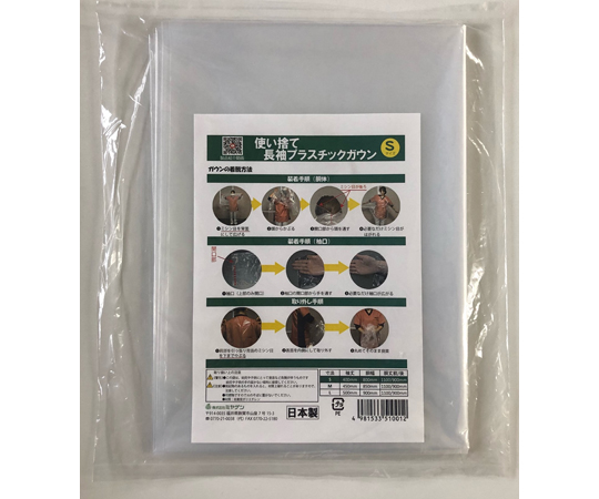 ●Good Design Award2021金賞受賞商品です。●Tシャツのように被るように容易に着用できます。●前面の襟元と袖口が大きく開かないため、密閉性が高い構造です。●背面にミシン目があり脱ぎやすく、前面に触れずに裏返しになるため、飛沫感染の恐れのある表面に触れずに脱ぐことができます。●材質:LDPE(低密度ポリエチレン)●袖丈:400mm●胴幅:800mm●胴丈前/後:1100/900mm