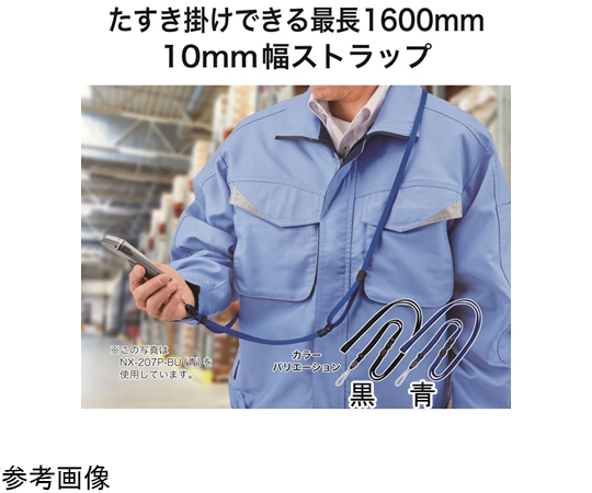 ●10mm幅ストラップです。長さ900~最長1600mmまで使用できるロングタイプです。サビないオールプラスチック製です。●ワンタッチで取り外せる脱着式です。●脱着マツバ、長さ調整、安全装置付●入数:1本●ひも材質:再生PET●ひも(ストラップ)サイズ:長さ約160cm/幅約10mm●グリーン購入法適合商品●GPNエコ商品ねっと掲載