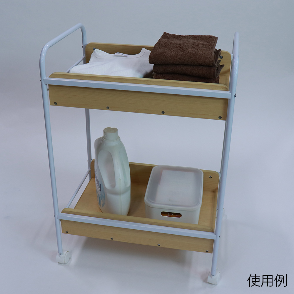 ●棚がナチュラル調でおしゃれな木製の脱衣ワゴンです。●診察室で手荷物や衣類を手早く置けて便利です。●棚側面には落ち止めのバー付きで、開放的な棚なので、さっと何が載っているかが見やすいです(忘れ物防止)。●棚板のお手入れ方法:ホコリを落とす際は柔らかい布で乾拭きするか、きつく絞った布等で拭いて下さい。●外形寸法:幅570×奥行き440×高さ780mm(キャスター含む)●材質:スチール(粉体塗装)、パーティクルボード(PVC)●重量:8.5kg●耐荷重:5kg/段(均等荷重)●キャスター:φ40mm(ストッパー2個付き)●組み立て式(要工具)●※北海道、沖縄、離島は別途送料。