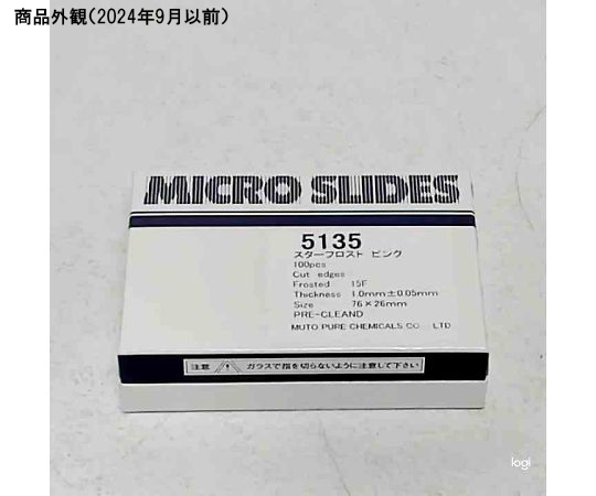 ●武藤のスライドグラスは褪色の原因となるアルカリ溶出量の少ない日本板硝子(株)製フロート板ガラスを切断加工してあります。●さらに超音波洗浄し、ホコリをさける為クリーンルーム内にて、検査・包装していますので、安心して御使用いただけます。●1)耐溶剤性です●▼長時間、溶剤に漬けておいてもフロストが剥がれません。●2)書き易い●▼きめの細かいフロストの為、筆記具を選ばずにきれいな文字が書けます。●3)見易い●▼フロスト面が不透明なので、黒い実験台の上でも文字の判読に苦労しません。●4)消えにくい●▼免疫染色等ステップ数の多い時でも、従来のフロストよりも文字が消えにくくなりました。●5)9 色のカラー分類ができます●▼ホワイト、イエロー、ピンク、ブルー、グリーン、シェルピンク、オレンジ、キャメル、ライラックの9 色が揃っています。●6)ニュートンリングが出にくい●▼フロストが盛り上がっている為、湿度の高い季節でも密着しにくくなりました。●7)フロストサイズ●▼15mm フロストが標準品ですが、その他に20mm、25mmフロストがあります。●洗浄:〇●縁磨:×●カラー:ピンク●長さ×幅×厚さ:76×26×1.0mm●フロスト幅:15mm●包装:100枚●使用期限:2年