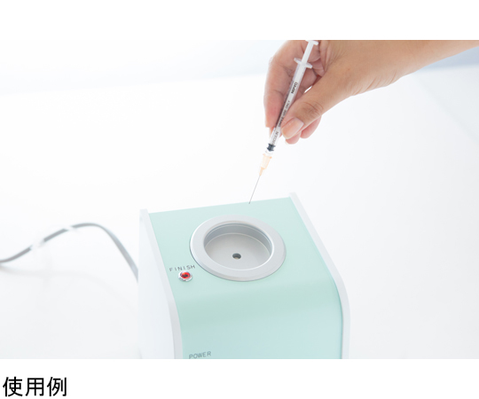 ●針刺し事故による医療現場の二次感染を防ぐために、鋭利な注射針の先端を瞬時に、かつ安全に処理できます。●挿入口に使用済み注射針を挿し、押し下げるだけで電気溶解作用により瞬時に除菌します。同時に、先端形状が溶解により丸くなりますので「針刺し事故」を防ぐことができます。●誰でも簡単に鋭利な注射針を安全、安心に処理できます。●使用しないときは電気が流れません。●ダストボックスに溜まった処理済みのゴミを捨てるだけでOKです。●電源を入れて操作するだけです。●内部構造は耐久性のある素材を使用していますので、ほぼメンテナンスフリーでお使いいただけます。●軽量コンパクト設計です。軽々と持ち上げられるので、診察、回診時の移動もスムーズです。●処理時間:約1~3秒●処理可能針:太さ/25~18G、針長/14~38mm●電源:AC100V 50/60Hz●消費電力:注射針消滅処理時/33W、通常時/8W●本体外形寸法:139×172(取手含む)×172mm●重量:約3.8kg
