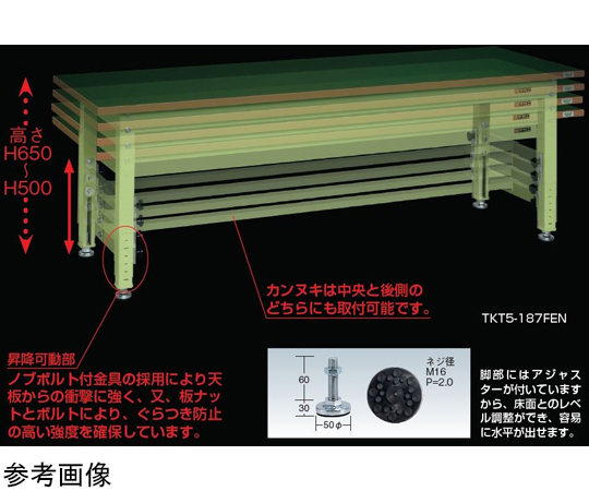 ●高さ500~650mmの範囲で25mm毎に高さ調整可能!!低床用作業台として最適!●メラミン天板を使用したワークテーブルは、耐衝撃性・耐薬品性・耐摩耗性に優れた高性能天板です。主に実験台・研究施設に適しています。●天板表面はサラサラとしており、軽梱包作業・滑り易さを求める方にもピッタリです。●天板の芯材にパーチクルボードを採用していますので、たわみに強くなっています。多少の重量物を載せてもビクともしません。●工場、倉庫、研究室、学校、事務所、薬局、病院にて。装置架台、検査台、検品台、組立台、梱包台、包装台、加工台・工作台・物置台、DIY作業、作業用テーブル、として。●4トントラック(幅:約2.3m)でお届けする場合がございますので、配送箇所までトラックが通行可能か事前にご確認下さい。●4トントラックにて配送できない場合には、ご注文をお受けできない場合もございます。●屋号の無い場合は注文をお受けできない場合もございます。●お客様のご都合により再配送の手配が発生した場合には別途費用が必要となりますのでご注意ください。●間口(mm):1500●奥行(mm):750●高さ(mm):500~650●色(本体):ダークグレー●色(天板):ホワイト●色(脚部):ダークグレー●均等耐荷重(kg):400●質量(kg):49●天板寸法(幅W×奥行D×高さH)(mm):1500×750×30●材質(天板):メラミン●材質(本体):スチール(粉体塗装)●天板厚(mm):30●アジャスター:防振タイプ(ネジ径/M16×P2.0)●グリーン購入法:適合●沖縄・離島・北海道は送料別途
