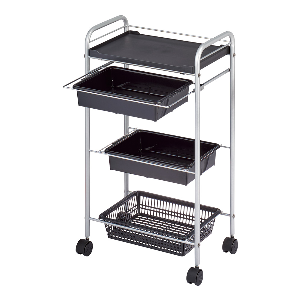 ●ワイドサイズの天板を使用したワゴンです。●フレームはサビに強い粉体塗装仕上げです(メタリックシルバー)。●サイズ(mm):485×300×865●重量(kg):6.5●材質:フレーム/スチール粉体塗装、天板/ABS樹脂、パット・カゴ/PP(ポリプロピレン)●天板サイズ:445×30mm●パットサイズ:外寸法/365×275×55mm、内寸法/320×220×53mm●カゴサイズ:外寸法/380×295×95mm、内寸法/323×230×84mm●キャスター:双輪Φ50mmナイロン製●付属品:バット×2個、カゴ×1個