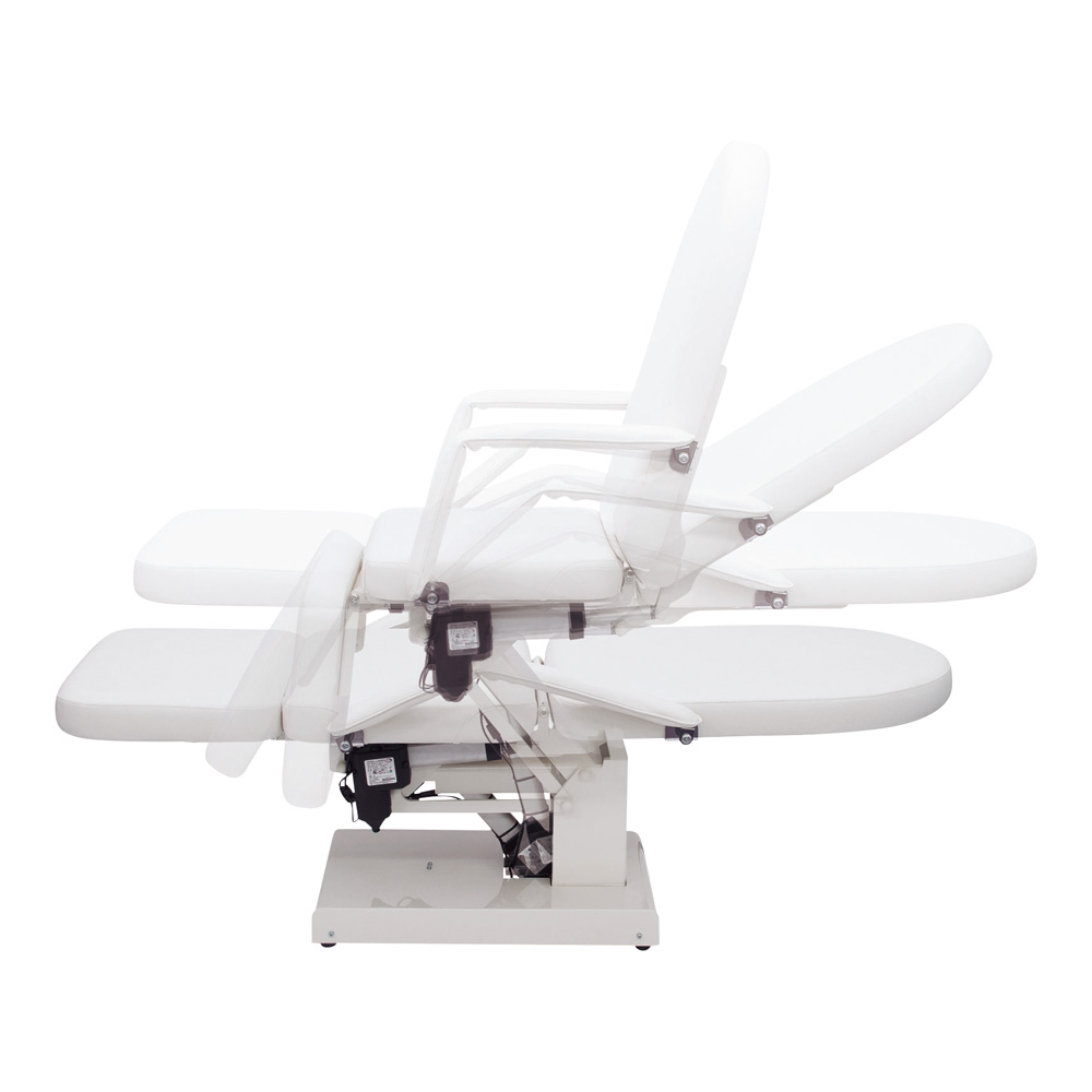 ●スリーモーター採用でコンパクト設計の電動式ベッドです。●高さ調節はフットスイッチ、背脚角度調節は手元スイッチで操作可能です。●アームレストを標準装備しています。●カラー:白●幅×奥行×高さ(mm)※:500×1700×520~770●★入数:1個●材質:フレーム/スチール製(粉体塗装)、クッション/ウレタンフォーム・合板、表皮/PVC(塩化ビニル樹脂)レザー張り(耐アルコール・耐次亜塩素酸・抗菌・防汚・難燃)●クッション厚:70mm●角度調節:背部/0~85°、脚部/0~-90°●椅子時:奥行/860mm、全高1260mm●重量:約72kg●※上記の幅にアームレストの幅(約90mm×2)は含まれていません。