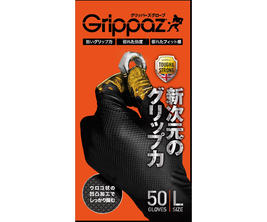●魚のウロコ形状と親指内側、そして手袋内側にも施された凹凸加工が新次元のグリップ力を実現しました。●通常の薄手ニトリルゴム手袋1.5倍以上の強度を実現しました。●工具やねじ、ナットなどがつかみやすく、作業の疲労感を軽減します。●油やケミカルの皮膚への浸透を低減し、手への安全性を向上します。●色:ブラック●サイズ:L●材質:ニトリルゴム●掌幅:105mm(±5mm)●全長:245mm(±5mm)●厚み:袖部/0.13mm(±0.03mm)、掌部/0.15mm(±0.03mm)、指先部/0.17mm(±0.03mm)