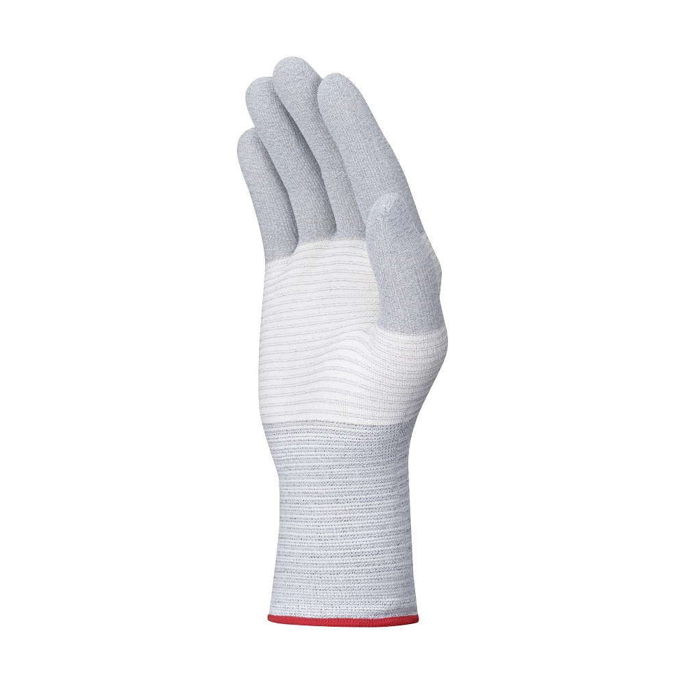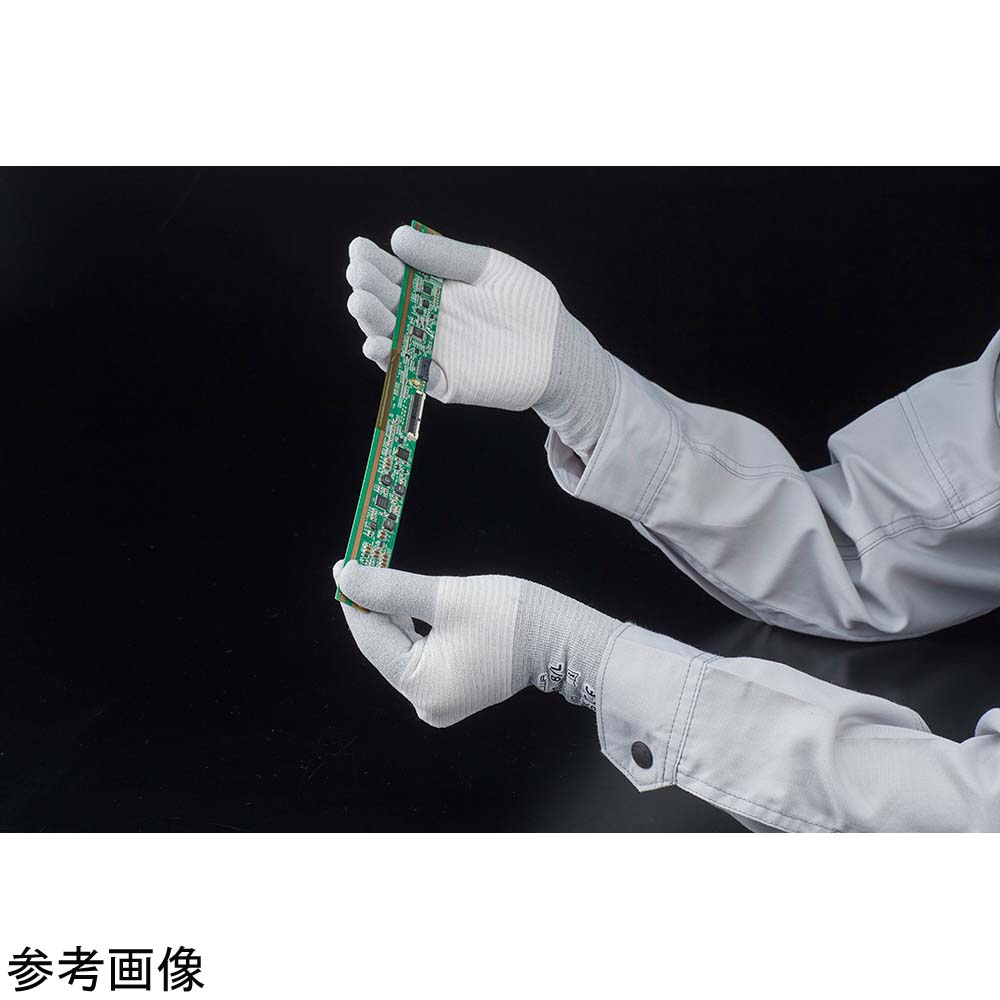 ●18ゲージ・シームレス編みにより、薄く手にフィットします。●カーボンが含まれる導電糸を採用しています。●導電性を有しているため、作業中の摩擦・接触による帯電を防ぎます。●手袋を着用したままタッチパネルを操作できます。●塗装前の金属製品などへのシリコーン含有物の転写を抑制します。●繊維製品に有害な化学物質が含まれていないことを証明するエコテックス?スタンダード100認証を取得しています。●サイズ:S●全長:180mm●手のひらまわり:150mm●中指の長さ:61mm●材質:繊維部/ ナイロン、ポリエステル、ポリウレタン