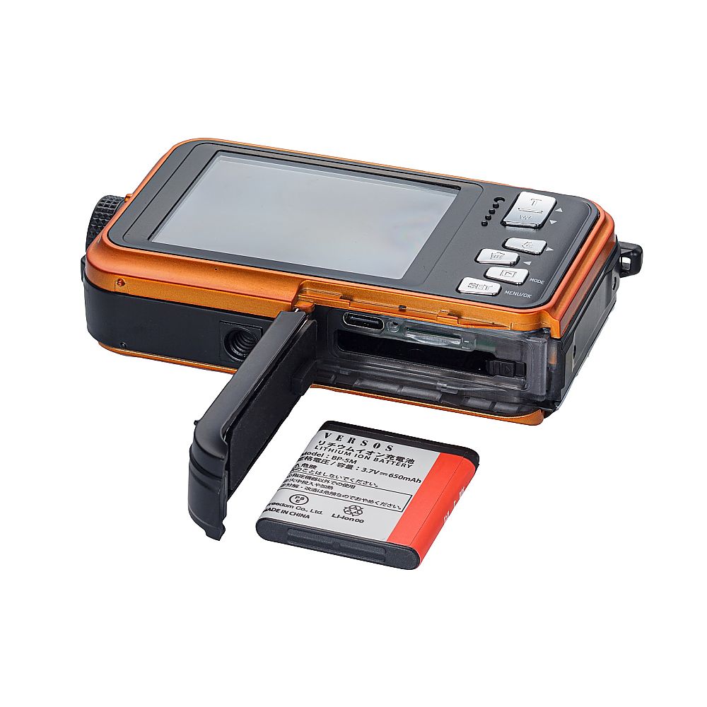●小型・軽量です。●防水性能:IPX8(水深3mまで)●レンズ面にも画面があるので自撮りもできます。●セルフタイマー機能付きです。(オフ、2秒、5秒、10秒)●画素数:800万画素 1/3.2型 CMOS●焦点距離(35mmフィルム換算):28mm●外寸法:約114(W)×29(D)×65(H)mm●質量:約140g(充電池含む)●手振れ補正:電子式 手振れ軽減●防水性能:IPX8(水深3mまで)●防塵正能:IP6X●ズーム:デジタル/4倍●ISO感度:自動・100・200・400●静止画サイズ●▼8M:3264×2448●▼7M:3072×2304●▼7MHD:3648×2048●▼5M:2592×1944●▼3M:2048×1536●▼2M:1600×1200●▼2MHD:1920×1080●▼VGA:640×480●動画サイズ●▼2.7K:2688×1520、20fps●▼FHD:1920×1080、30fps●▼HD:1280×720、30fps●モニター:操作側/TFT液晶(2.7インチ)、カメラ側/TFT液晶(1.8インチ)●撮影範囲(レンズ先端から):標準/約80cm~∞●記録媒体:micro SD、micro SDHC(~128GB)●対応インターフェース:USB Type-C(2.0)●記録方式:静止画/JPEG、動画/AVI●電源:リチウムイオン二次電池(BP-5M)/3.7V 650mAh●充電時間:約2時間●連続使用時間(動画撮影時):約50分 ※使用状態および環境により異なります。●シーン選択機能:オート、風景、ポートレート、夜景、夜景ポートレート、高感度、スポーツ、ビーチ、パーティー●フィルター効果機能:標準、セピア、白黒、ビビッド●付属品:充電池×1、USBケーブル×1、ストラップ×1、ポーチ×1、取扱説明書×1、保証書×1●保証期間:1年