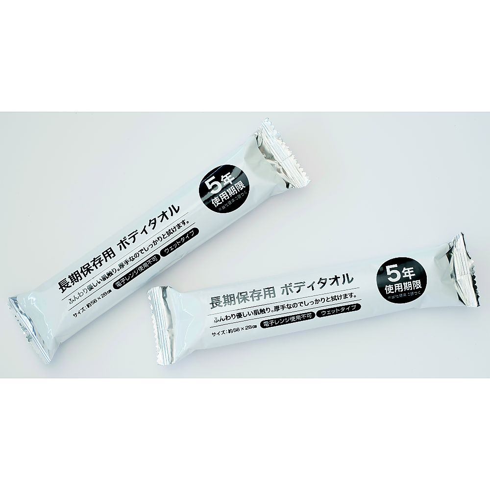 ●アルミフィルム使用で長期保存(使用期限5年)が可能な、超大判・厚手不織布の使い捨てのウェットタオルです。●超大判サイズなので1枚で全身が拭けます。●ディスポタイプだから、毎回清潔にご使用いただけます。●化粧品基準に準拠した薬液を使用しています。肌にやさしく、安全にお使いいただけます。●やわらかでボリュームのあるメッシュ構造が汚れをしっかり拭き取ります。●吸水・保水性の高い日本製のパルプレーヨン不織布を使用しています。●生分解可能な不織布を使用し、環境への負担を抑えることを目指します。●シートサイズ:約560×280mm●材質:本体/スパンレース不織布、フィルム材/アルミ箔●成分:水、ベンザルコニウムクロリド、ブチルカルバミン酸ヨウ化プロビニル、セチルピリジニウムクロリド、PG●無着色・無香料・ノンアルコール●製品サイズ:約50×200mm●有効期限:約5年●日本製