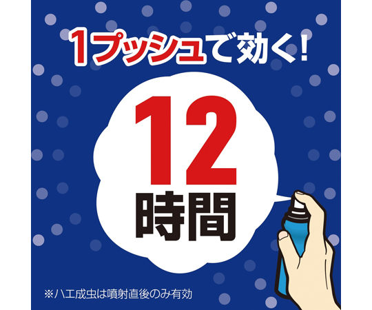 ●1日1プッシュ。速く効く、長く効く※1プッシュで12時間蚊に効く。●【Wの駆除で効く】薬剤がお部屋中に素早く広がる●▼(駆除1)空間に浮遊する薬剤が、飛んでいる蚊に効く●▼(駆除2)天井、壁、床に付着後、空間に再浮遊した薬剤が、天井、壁、床付近の蚊も逃さず効く●1回スプレーするだけで薬剤がお部屋に広がり、12時間蚊を駆除します。(ハエは噴射直後のみ駆除します。)●1回のスプレーで必要量の薬剤が噴射されます。使用後もその場所に置いておく必要がないので、1本で家中で使えます。●電気も電池も火も使わないので、お子様のいるご家庭でも安心して使えます。●くびれがポイント:ラクににぎれてスプレーしやすい形状●低刺激・無香料●【販売名】アース殺虫エアゾールFJ1●【効能・効果】蚊成虫及びハエ成虫の駆除●【防除用医薬部外品】●商品サイズ:幅/125mm、奥行/36mm、高さ/210mm●重量:50g●持続期間:200日●成分:【有効成分】トランスフルトリン1.68g/本【その他の成分】イソプロパノール、LPG●効果効能:蚊成虫及びハエ成虫の駆除●内容量:41.7mL●防除用医薬部外品●香り:無香料
