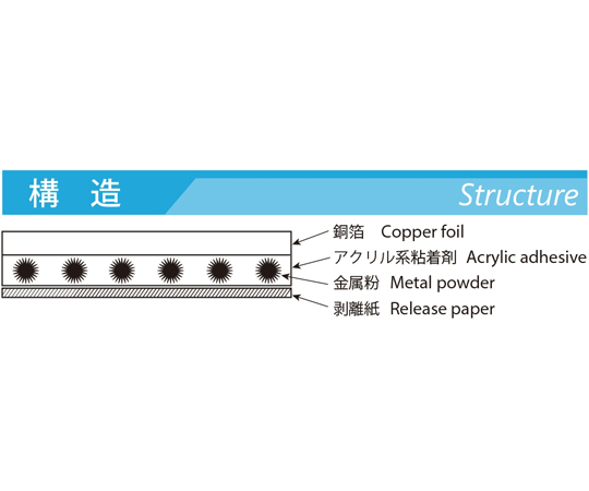 ●フレキシブルですので巻き付け、貼り付け作業が容易です。●導電性の粘着剤を使用しているため、シールド効果を低下させません。●金属箔にはんだ付けができます。●53μm厚の薄型品です。●UL510(FR)認定品です。●【用途】●筐体のグラウンディング、シールディング●ケーブルハーネス及びコネクタ端末のグラウンディング、シールディング●EMIシールドルーム●シールド特性測定時の緊急対策として適しています●幅:25.0mm●長さ:50m●金属箔厚み:18μm●粘着剤厚み:35μm●合計製品厚み:53μm●接着力:10N以上/25mm(180°ピール対SUS)●接触抵抗値:0.002Ω/25mm□19.6N)●難燃性:UL510FR