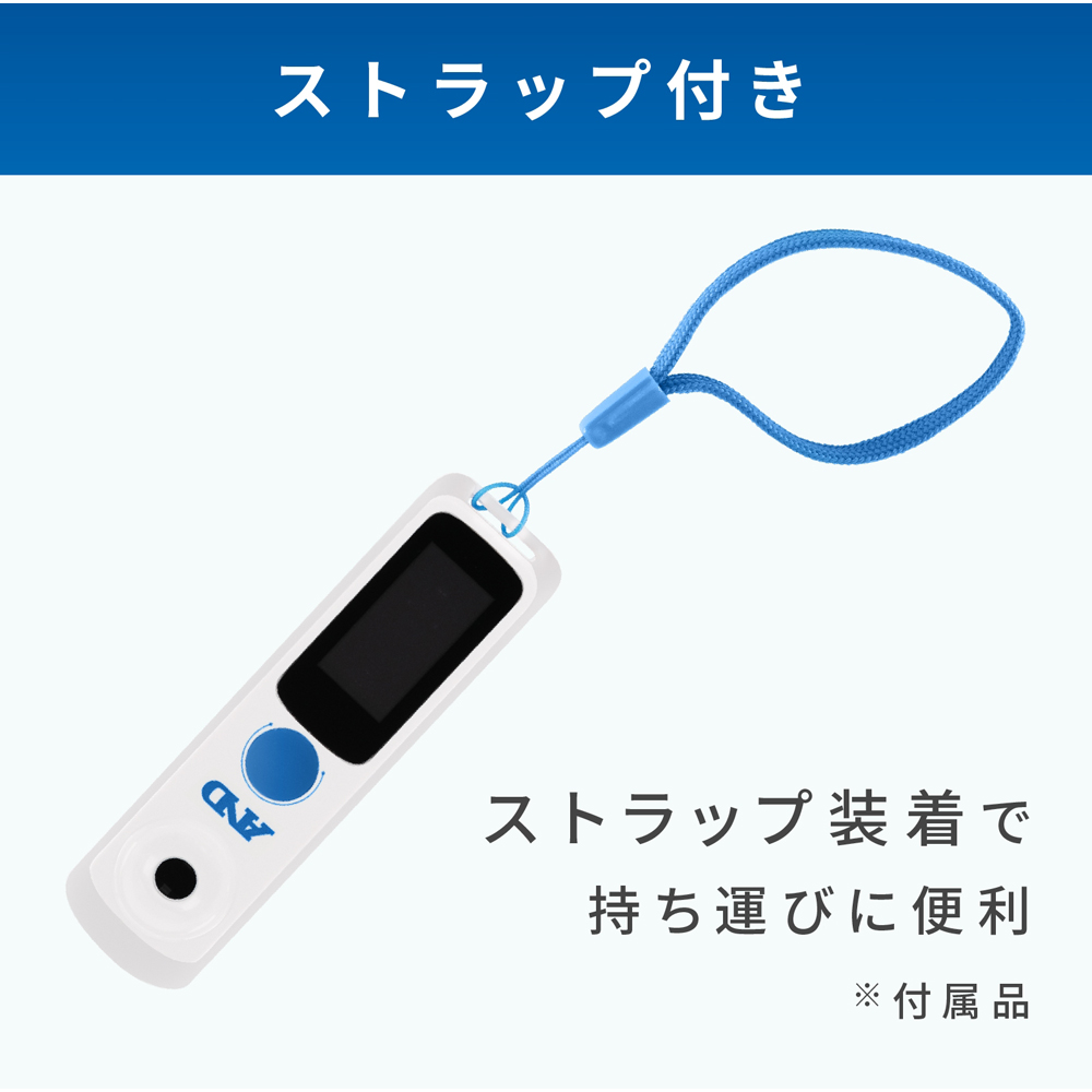 ●液体の糖度(Brix値)が測定可能なデジタル糖度計です。●果実・野菜や清涼飲料水、醤油・ソースなど、様々な液体の糖度測定が可能です。●Bluetooth?内蔵で、アプリと連携が可能です。●iOS、Androidnoの専用アプリ「A&D Brix Check」を使用して、スマートフォンに測定値を表示したり、スマートフォンにて操作・データの画像保存が可能です。●防水性能IP67、水洗い可能で衛生的です。●電源はUSB充電式で、付属のUSB Type-Cケーブルで充電可能です。●手のひらサイズのコンパクト設計で、ポケットに入れて持ち運びが可能です。●測定範囲:Brix/0.00~55.00%、温度/-20.0~85.0℃●測定精度:Brix/±0.2%、温度/±1.0℃●最小表示:Brix/0.05%、温度/0.1℃●測定時間:約3秒●補償温度範囲:0~45℃(自動温度補正)●使用温度範囲:5~45℃●屈折率表示:あり●オートパワーオフ:約1分(Bluetooth非接続時)●データ保存:スマートフォンで画像表示●対応OS:iOS、Android(OSのバージョンについてはA&Dのホームページ参照)●Bluetoothバージョン:Bluetooth Low Energy(BLE)4.2●使用回数(フル充電時):約1700回測定●電源:内蔵充電池(350mA/h)●充電時間:約1.5時間●外形寸法:23(W)×84(H)×14.5(D)mm●質量:約24g(本体のみ)●付属品:取扱説明書、USBケーブル(Type-C)、収納ポーチ、スポイト2本、ストラップ、クリーニングクロス、検査合格証