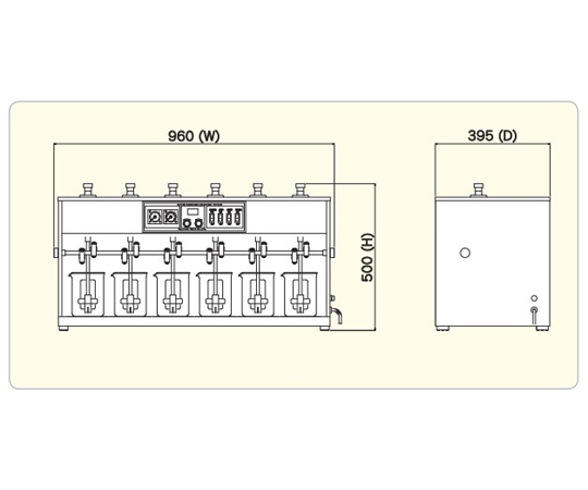 ●急速回転から緩速回転へ、攪拌速度の自動変換設定機能が付いています。●安定した回転速度を保ちます。(フィードバック制御)●回転速度は、見易いデジタル表示です。●攪拌シャフトは、上下方向の任意の位置に設定出来ます。●撹拌終了はブザーでお知らせします。●薬液注入装置が付いています。(回転中も注入可能)●ビーカー・300~1000mL用、オールステンレス(SUS-304製)●ビーカー・架数:6個●回転数検出方式:光学的非接触センサーによる電子計測方式●撹拌回転数と精度:20~200r/min±6r/min・50/60Hz(デジタル表示)●タイマー(撹拌時間設定):アナログ型電子タイマー(分・秒ダイアル設定)2個付き(60分まで設定可能)●モータ(ACモータ):25W●蛍光灯(昼光色):32W×1本●薬液注入管:12本●電源(AC):100V-3A●本体寸法(W×D×H)mm:960×395×500●質量:30kg●構成部品:速度可変式、回転数デジタル表示、シャフト上下可動、薬液注入装置、背面照射、タイマー2個●機能:自動変換設定、見易い表示、上下可動スムーズ、連動注入、見易い試料、便利なタイマー●ご注文の際は電圧と周波数をご指定ください。●超高速回転(max800r/min迄)も承ります。(特注)ご照会ください。●本体寸法にはつまみ等を含んでいます。●※英訳カタログもご用意致しております。