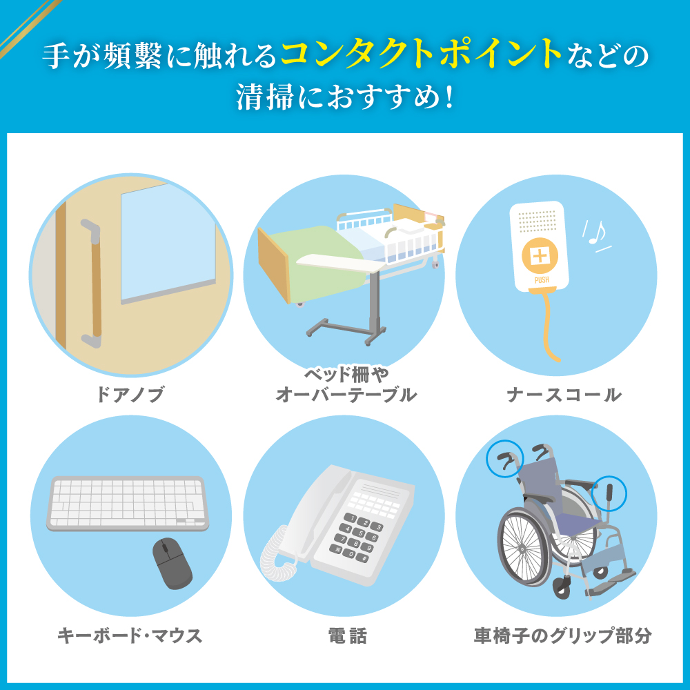●1枚で汚れ洗浄、除菌 ※ウイルス除去ができる、環境清拭用シートです。●第四級アンモニウム塩を配合しています。●複数のウイルス・細菌で検証を実施しています。●非アルコール系なので対象物を傷めにくく、特殊なシート柄で、皮脂汚れから血液汚れまでしっかり落とします。●日常清掃から、細菌・ウイルス対策まで、幅広い用途でご使用頂けます。●※すべての菌・ウイルスを除去するわけではありません。●シートサイズ:150×300mm●雑貨品●成分:界面活性剤・除菌剤(第4級アンモニウム塩配合)●シート材質:レーヨン、ポリエステル、ポリエチレン、ポリプロピレン●液性:弱アルカリ性