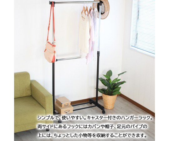 ●使いやすい高さに調節できるハンガー。●移動に便利なキャスター付きです。●サイズ:幅806×奥行き425×高さ980~1600mm●材質:スチールパイプ(粉体塗装・クロムメッキ)・塩化ビニール樹脂