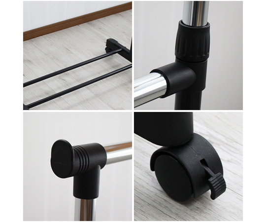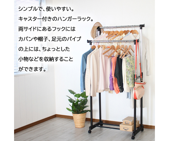 ●高さが自由に調節できるハンガーラック。●前後の高さを変えて丈の長い服・短い服と分けたりと使い方自由。●サイズ:幅815×奥行き425×高さ980~1665mm●材質:スチールパイプ(粉体塗装・クロムメッキ)・塩化ビニール樹脂
