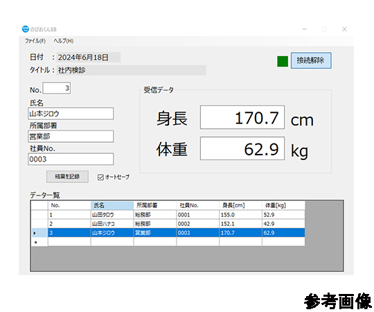 ●定期健診に適したコンパクトな本体。国家検定付きです。●Bluetooth通信によるデータ化やパソコンモニター上の測定値表示も可能です。(※Bluetooth接続時は他のソフト/オプション機器の同時使用はできません)●身長計は手動操作(最大測定209.0cm)●体重計部は高さ6,5cmの薄型で乗り降りしやすくお子様にも安全です。(精度等級3級)●収納時寸法:W330×L492×H1035mm●測定範囲:身長/85.0~209.0cm、体重/2.0~150.0kg●本体重量:12.2kg●最小表示単位:身長計部/0.1cm、体重計部/0.1kg●電源:専用ACアダプター・単2形乾電池×4本(乾電池は付属しておりません)●Bluetooth通信仕様●▼使用周波数帯域:2.4GHz帯●▼通信方式:Bluetooth4.2●▼通信距離(目安):10m(class2)●付属品:ACアダプター、電池ケース、ホールドスイッチ、スイッチホルダー