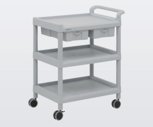 ●工具を使わずに組み立て・分解が容易にできるオールプラスチックカートです。●軽量で頑丈な設計で使い勝手が良く、引き出しも2個付いていますので収納力にも優れています。●Point1:操作性に優れた軽量設計●Point2:用途・目的に応じて選べる多種多様なラインナップ●ラクラク移動の取手付き!!●ハンドル付きで運搬に適したシリーズです。●たくさん収納!引出し付きタイプです。●棚板:3段●幅×奥行×高さ(mm):705×444×855●重量(kg):9.5●材質:天板・取手・引出し/PP(ポリプロピレン)、支柱/ABS樹脂●棚板有効サイズ:553×403mm●棚板間隔:140/235●キャスター:φ75mmエラストマー製(2輪ストッパー付き)●耐荷重:50kg/段●引出し内寸法:400×225×90mm●組み立て式