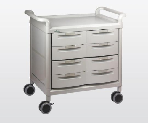 ●工具を使わずに簡単に組み立て・分解ができる多目的カートです。●軽量で頑丈な設計の、使い勝手に優れたオールプラスチック製です。●天板・棚板は枠付きですので、小物類の落下を防止します。●Point1:操作性に優れた軽量設計●Point2:用途・目的に応じて選べる多種多様なラインナップ●ラクラク移動の取手付き!!●たっぷり収納、大容量タイプです。●引出数:浅型8個●幅×奥行×高さ(mm):905×530×870●重量(kg):29.7●材質:ABS樹脂●棚板有効サイズ:665×430mm●キャスター:φ100mmエラストマー製(双輪・2輪ストッパー付き)●総耐荷重:70kg●天板・棚板耐荷重:50kg/段●引出し内寸法:290×350×72mm●組み立て式
