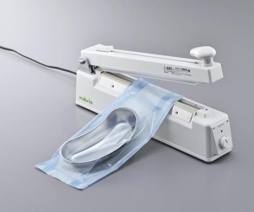 ●5mm幅で滅菌バッグをしっかりシールします。●滅菌バッグのフィルム面を上に向けた状態でシールができます。●★※本製品のヒーターは下側に付いていますので、滅菌バッグのフィルム面を下側にセットした方が強く溶着されます。●★※使用する滅菌バッグによってはフィルム面を上側にセットした状態でシールできない場合や溶着が弱くなることがございます。●▼★フィルム面を上側にセットして溶着が弱い場合:(1)フィルム面を下側にセットする。または(2)通電時間を長くセットする。●▼★フィルム面を下側にセットしてフィルムが溶けすぎている場合: (1)フィルム面を上側にセットする。または(2)通電時間を短くセットする。●スライド式のカッター付きです。●シール幅×長さ(mm):5×400●本体サイズ(mm):92×570×285●シーラー付属品:ヒーター×2本、フッ素樹脂シート×2枚、フッ素樹脂粘着テープ×2枚、カッターブレード×1枚●シール能力:PE(ポリエチレン)/~0.6mm、PP(ポリプロピレン)/~0.5mm●電源:AC100V 50/60Hz●消費電力:880W●電源コード長:1.8m(2Pタイプ)●重量:5.5kg