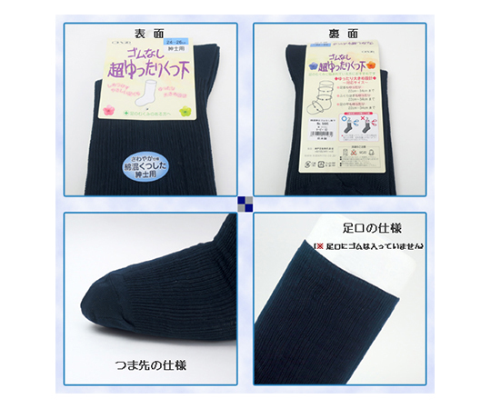 ●足のむくみやすい方へ。超ゆったりタイプのゴムなし靴下です。●足囲り34cmまで対応。はかせやすいタイプです。●型番:5674ネービー●仕様:紳士秋冬用●素材:アクリル・ナイロン・毛●足口・ふくらはぎ・足の甲各円周:22~34cm対応●サイズ:24~26cm●入数:1足入