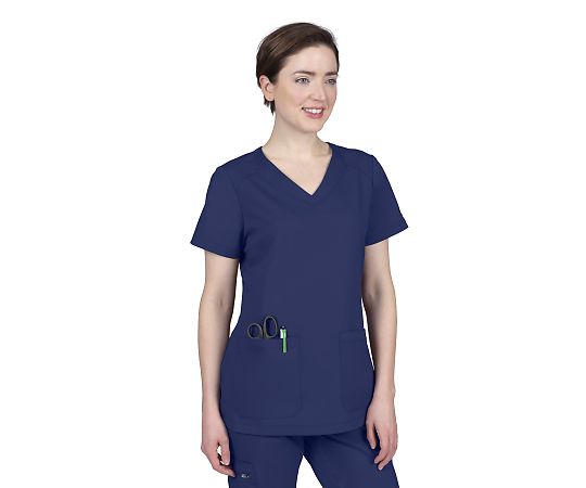 ●女性専用ならではの美しく、すっきり魅せるシルエットです。●レーヨン素材を含んだ伸縮性のある生地を採用しており、滑らかな肌触りとストレッチ性があります。●防皺性(ぼうしわせい)に優れ、ケアもしやすい素材を採用しています。●両脇に外ポケットがあり、右にはペン等のクリップを掛けられるスリットが3つ、左に印鑑などを収納できるコインポケットが付いています。●全世界で年間500万枚以上の販売実績のある、ニューヨーク発のスクラブメーカーです。●サイズ:LL相当●色:ネイビー●★入数:1枚●材質:ポリエステル77%、レーヨン20%、スパンデックス3%●ポケット:左右脇(右/ペン用のスリット3つ、左/コインポケット付き)●特徴:ストレッチ性・ノンアイロン●首元形状:Vネック●メーカーサイズ:L●バスト:94~102●ウエスト:76~84●ヒップ:102~109●肩幅:41●袖丈:20●総丈:71