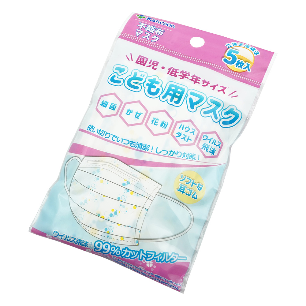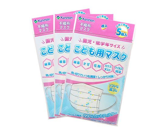 ●子供の顔にフィットし、鼻や口を圧迫せず、息苦しさを解消する特殊立体加工です。●刺激の少ない不織布を使用しています。●耳が痛くなりにくいソフトゴム使用です。●★内容量(g):-●サイズ(mm):125×80●入数:1袋(5枚/袋×3袋入)●材質:本体/PP(ポリプロピレン)不織布、耳ひも部/ウーリースパンテックス、ノーズワイヤー/PE(ポリエチレン)●イヤーループタイプ●フィルター機能:99%カットフィルター(BFE・PFE・VFE)●ケース入り数量:10袋入●※1袋(5枚/袋×3袋入)あたりの価格です。