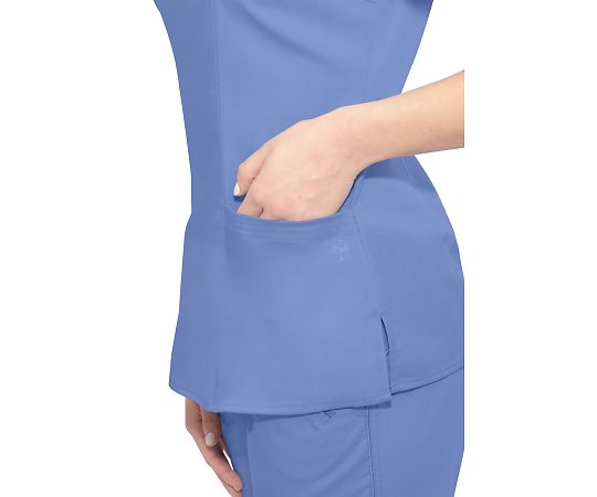 ●女性専用ならではの美しく、すっきり魅せるシルエットです。●レーヨン素材を含んだポリエステル生地を採用しており、滑らかな肌触りです。●防皺性(ぼうしわせい)に優れ、ケアもしやすい素材を採用しています。●ノンアイロン仕様のため、洗濯・乾燥の後すぐに使用可能です。●全世界で年間500万枚以上の販売実績のある、ニューヨーク発のスクラブメーカーです。●サイズ:LL相当●色:ライトブルー●入数:1枚●材質:ポリエステル77%、レーヨン20%、スパンデックス3%●ポケット:左右脇●ノンアイロン・ストレッチ性●首元形状:モックラップ●メーカーサイズ:L●バスト:94~102●ウエスト:76~84●ヒップ:102~109●肩幅:40●袖丈:20●総丈:70