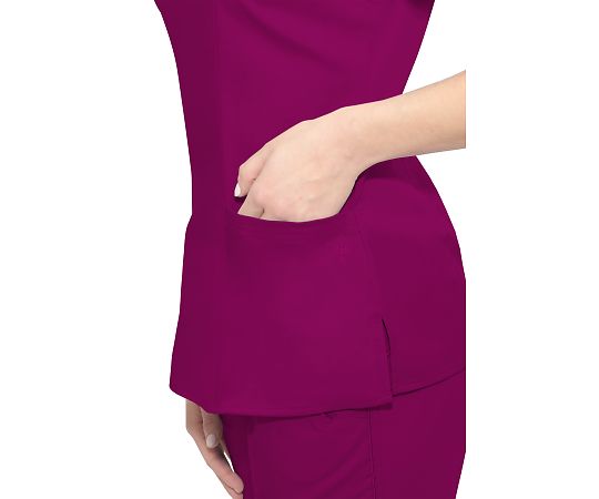 ●女性専用ならではの美しく、すっきり魅せるシルエットです。●レーヨン素材を含んだポリエステル生地を採用しており、滑らかな肌触りです。●防皺性(ぼうしわせい)に優れ、ケアもしやすい素材を採用しています。●ノンアイロン仕様のため、洗濯・乾燥の後すぐに使用可能です。●全世界で年間500万枚以上の販売実績のある、ニューヨーク発のスクラブメーカーです。●サイズ:LL相当●色:ワイン●入数:1枚●材質:ポリエステル77%、レーヨン20%、スパンデックス3%●ポケット:左右脇●ノンアイロン・ストレッチ性●首元形状:モックラップ●メーカーサイズ:L●バスト:94~102●ウエスト:76~84●ヒップ:102~109●肩幅:40●袖丈:20●総丈:70