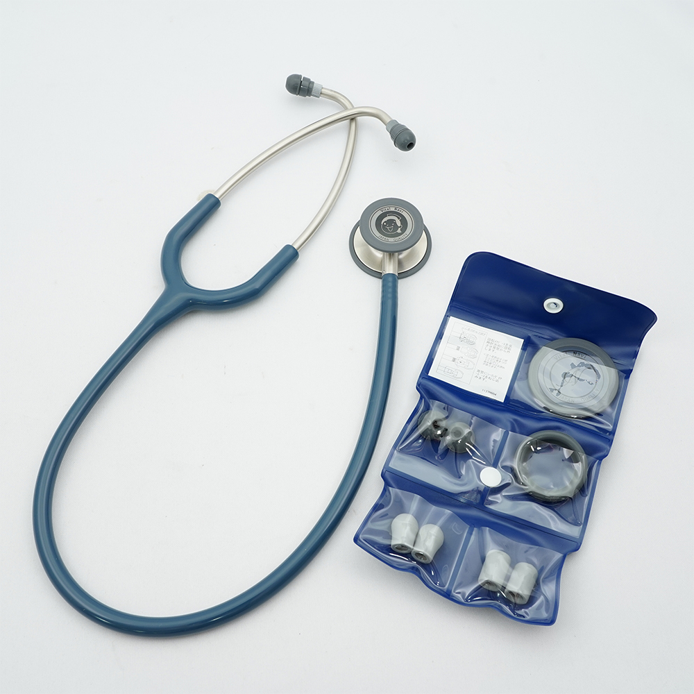 ●成人用と小児用のサスペンデッド型ダイアフラムを両面に備えており、それぞれ低音と中高音の聴診が可能です。●小児用面はダイアフラムを取り外し、ベル面に変更することができます。低音の聴診に適しています。●耳管は回転式ですので、個人に合った角度にフィットさせることができます。●回転式のソフトイヤピースで使用時に耳への摩擦が減り、耳への負担を軽減します。●イヤピースは2種類×2サイズの計4種類が付属しており、お好きなイヤピースに交換ができます。●成人から小児まで、これ1本で聴診できます●交換用部品の色:グレー●★色:ネイビーブルー●★入数:1個●材質:チェストピース・耳管/ステンレス(SUS304)、チューブ/PVC(塩化ビニル樹脂)、ダイアフラム・リング/エポキシ樹脂・シリコーン、ソフトイヤピース/シリコーン●面サイズ:成人用面/Φ48mm、小児用面/Φ36mm●耳管:内バネ式(角度調整可能)●全長:約720mm●重量:約175g●付属品:交換用部品一式(サスペンデッド型ダイアフラム(成人用)1枚、サスペンデッド型ダイアフラム(小児用)1枚、ソフトイヤピース(大)1セット、シーリングイヤピース(大)1セット、シーリングイヤピース(小)1セット