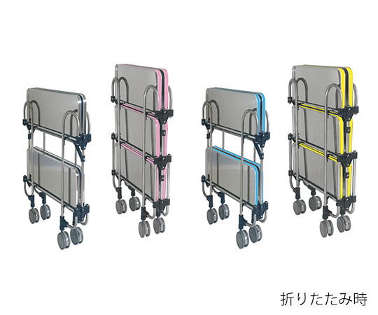 ●コンパクトな折りたたみカートです。●サイズ(mm):763×505×958●段数:3段●重量(kg):21●色:イエロー●材質:本体/ステンレス(SUS430)、天板縁(ノーマル)/アルミ、キャスター金具/スチール●キャスター:Φ100mmナイロンエラストマー製(双輪・対角ストッパー付き)●折りたたみ時寸法:(幅)763×(奥行)200×(高さ)1060mm●耐荷重:30kg/段●足パイプ径:Φ19mm