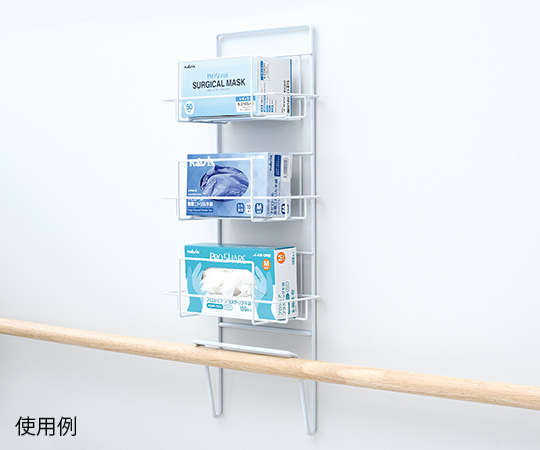 ●機能的なワイヤーのPPE用ホルダーで、手袋やマスクなどをまとめて設置できます。●横置き3段●取付方法:手すり型●幅×奥行×高さ(mm):277×131×722●材質:スチール(PEコーティング)●有効収納サイズ(1段あたり):(幅)260×(奥行)110mm(有効高さ/130mm)
