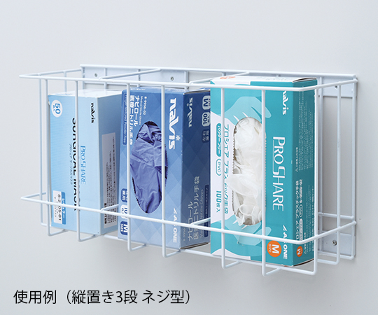 ●機能的なワイヤーのPPE用ホルダーで、手袋やマスクなどをまとめて設置できます。●縦置き3段●取付方法:マグネット型●幅×奥行×高さ(mm):478×129×231●材質:スチール(PEコーティング)●有効収納サイズ(1段あたり):(幅)150×(奥行)110mm