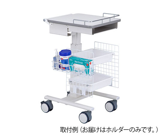 ●物品整理にとっても便利●検診用シーツや除菌ウエットタオル・手指消毒剤等、頻回に使用する物品を保管するのに便利です。●設置したい場所に合わせて取付方法が選べます。●取付方法:フック型●幅×奥行×高さ(mm):404×121×123●材質:スチール(PE(ポリエチレン)コーティング)●有効収納サイズ:390×110×100mm