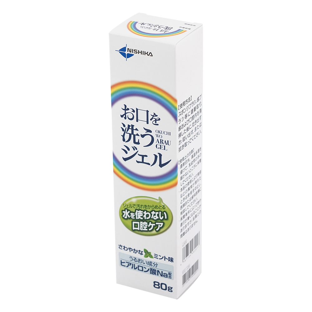 ●要介護高齢者の口腔ケアに適した特性を追及して生まれた口腔ケア用ジェルです。水を使わず、のどの奥に流れにくいジェルで、まるでお口を洗ったようにきれいにすることを目指し、開発されました。●お口の中に塗り広げやすくたれにくいジェルが、汚れを軟化させてからめとりやすくします。●除去しやすい性状なので、誤嚥の心配がある患者さんに対して'水を使わない口腔ケア'を行うことができます。●口腔清掃のほか、保湿ジェルとしても使用できます。●うるおい成分ヒアルロン酸Naを配合しています。●内容量(g):80●成分:水・グリセリン・ヒアルロン酸Na・セチルピリジニウムクロリド等●さわやかなミント味。