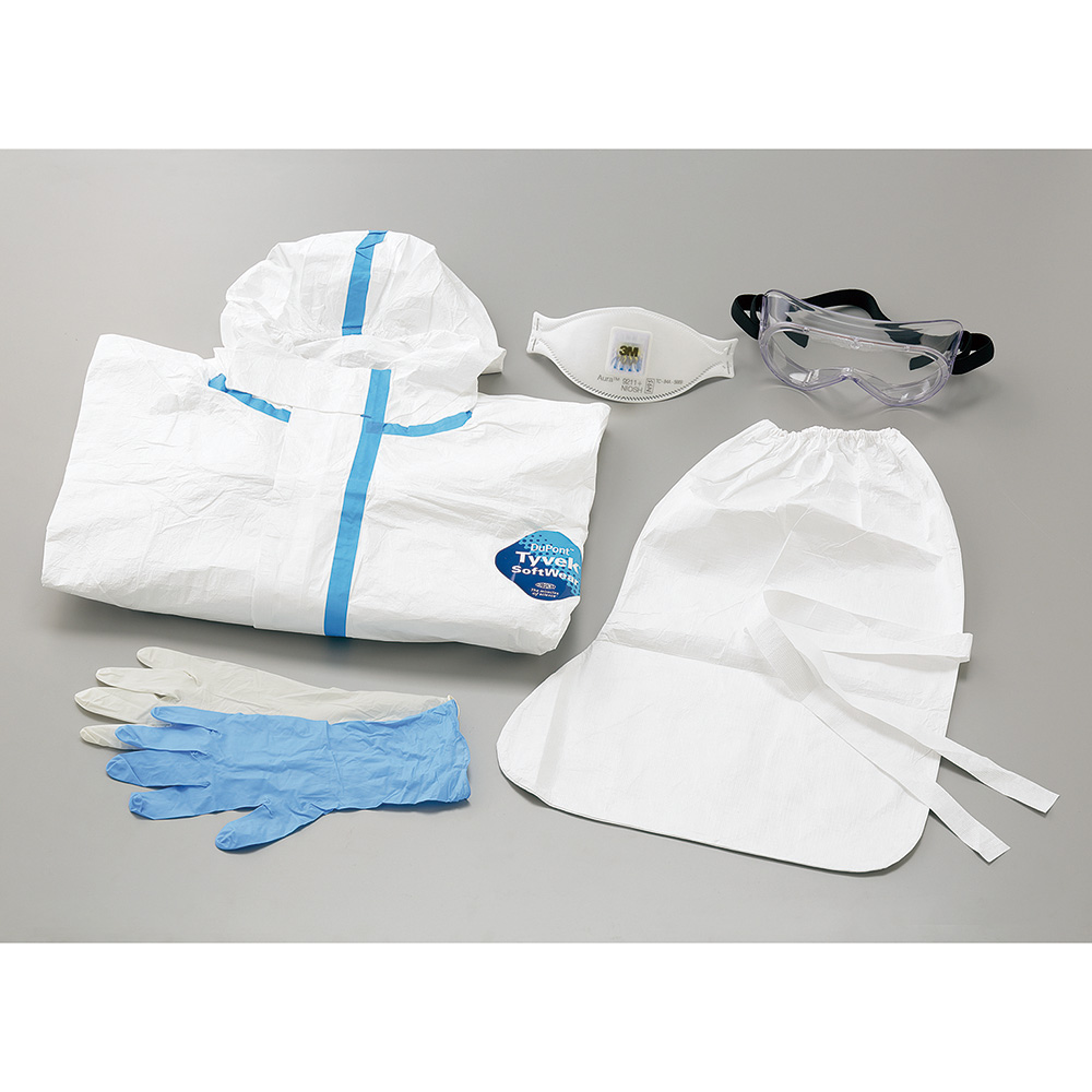 ●ウィルス・バクテリアなどの微細病原体の感染から人体を保護するためのセットです。●防護に必要な資材をひとつのセットにし、非常時などに利用しやすいパッケージになっています。●アウター手袋は薄手・厚手の2種類よりお選びください。●サイズ:M●アウター手袋:薄手●入数:1セット●材料:防護服・シューズカバー/タイベック(R)製●セット内容:●▼防護服(タイベック(R)ソフトウェアⅢ)●▼N95マスク●▼粉塵防護用ゴーグル●▼手袋(インナー・アウター)×各1双●▼タイベック(R)製シューズカバー×1足●▼着脱マニュアル●防護服:ウィルスバリア性/クラス3合格(JIS T 8060-2007D法)、人工血液バリア性/クラス3合格(JIS T 8061-2010D1法)●※タイベック(R)は米国デュポン社の登録商標です。