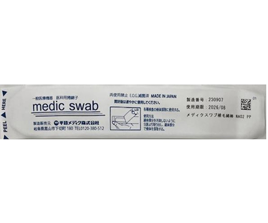 ●ナイロン短繊維を軸の先端に垂直に被覆(植毛)させた先端部と持ち手の軸部から構成される検体採取用具。検体採取用スワブです。●従来の綿を巻きつけたスワブに比べ、検体が表面に留まるため、リリース性が良く、少量の検体でも感度よく検査できることが期待されます。●各種検査の検体採取に使用。主に鼻腔、鼻咽頭の検体採取用に適しています。●綿棒サイズ●▼全長:約151mm●▼綿球長:約17mm●▼綿球径:約3mm●材質:採取部/ナイロン、軸/ナイロン●EOG滅菌済●自社国内製造●1本個包装●個包装サイズ:W190×H40mm●化粧箱サイズ:W190×D190×H120mm
