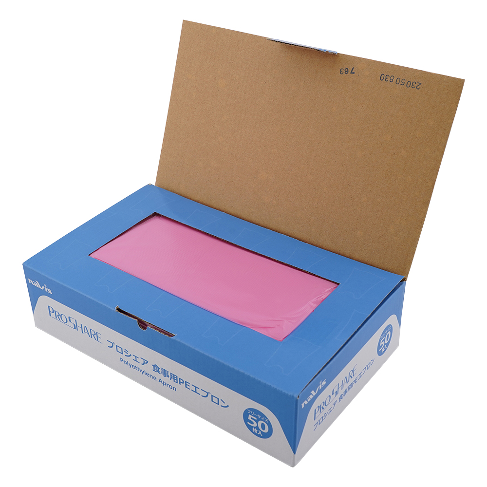 ●簡単に装着・脱衣できます。●柔軟性・防水性に優れています。●色:ピンク●幅×丈(mm):650×930●入数:1箱(50枚入)●材質:PE(ポリエチレン)●エンボス加工