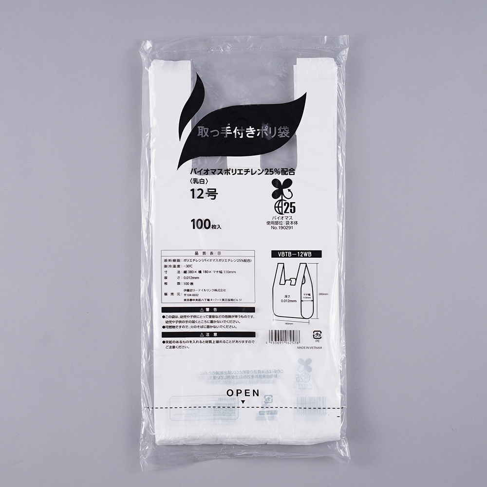 取って付きポリ袋(バイオマス25度) 180×380×0.012mm 100枚入 No.12