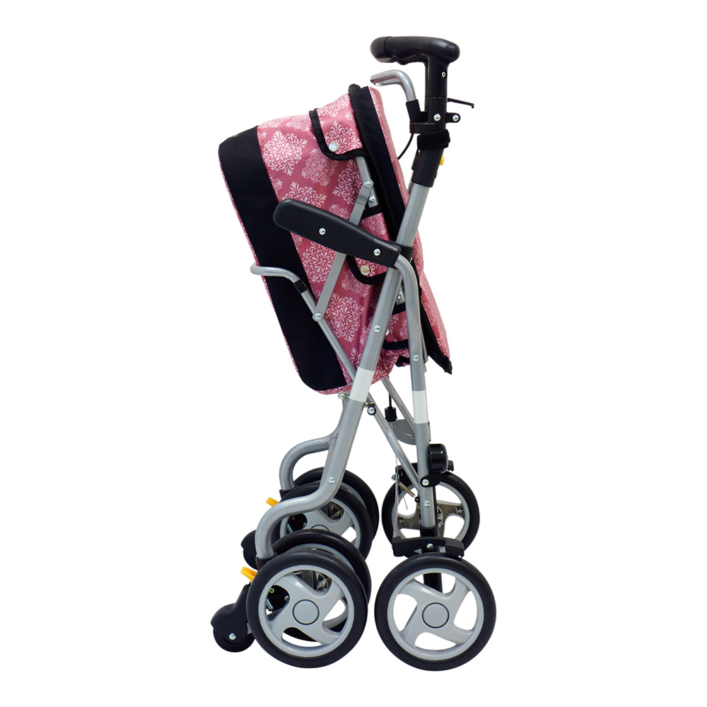 ●ちょっとした段差の乗り越えをサポート、2cmまでの段差なら乗り越えることができます。●カゴ受けを使用すれば買い物カゴを座面に載せることができます。●駐車用ストッパレバーを上げると後輪がロックされ、駐車中にしっかり後輪をロックし、下げるとロックが解除されます。●前輪2WAYキャスター付き(固定・120度)で方向転換もスムーズです。●サイズ(mm):515×710×825~925●材質:本体/アルミニウム(粉体塗装)、タイヤ/EVA、ホイル/PP、バッグ/ポリエステル●折りたたみ時サイズ:約515×410×885mm●座面サイズ:約340×430mm●座面高:約490mm●高さ調節:4段階(ピッチサイズ約40mm)●ハンドル高:約825~925mm●キャスター:前輪/Φ約170mm(固定・左右各60度)、後輪/Φ約170mm●傘受け付き●重量:約7.3kg●耐荷重:100kg●バッグ外寸法:約340×400×200mm●バッグ載荷重:10kg