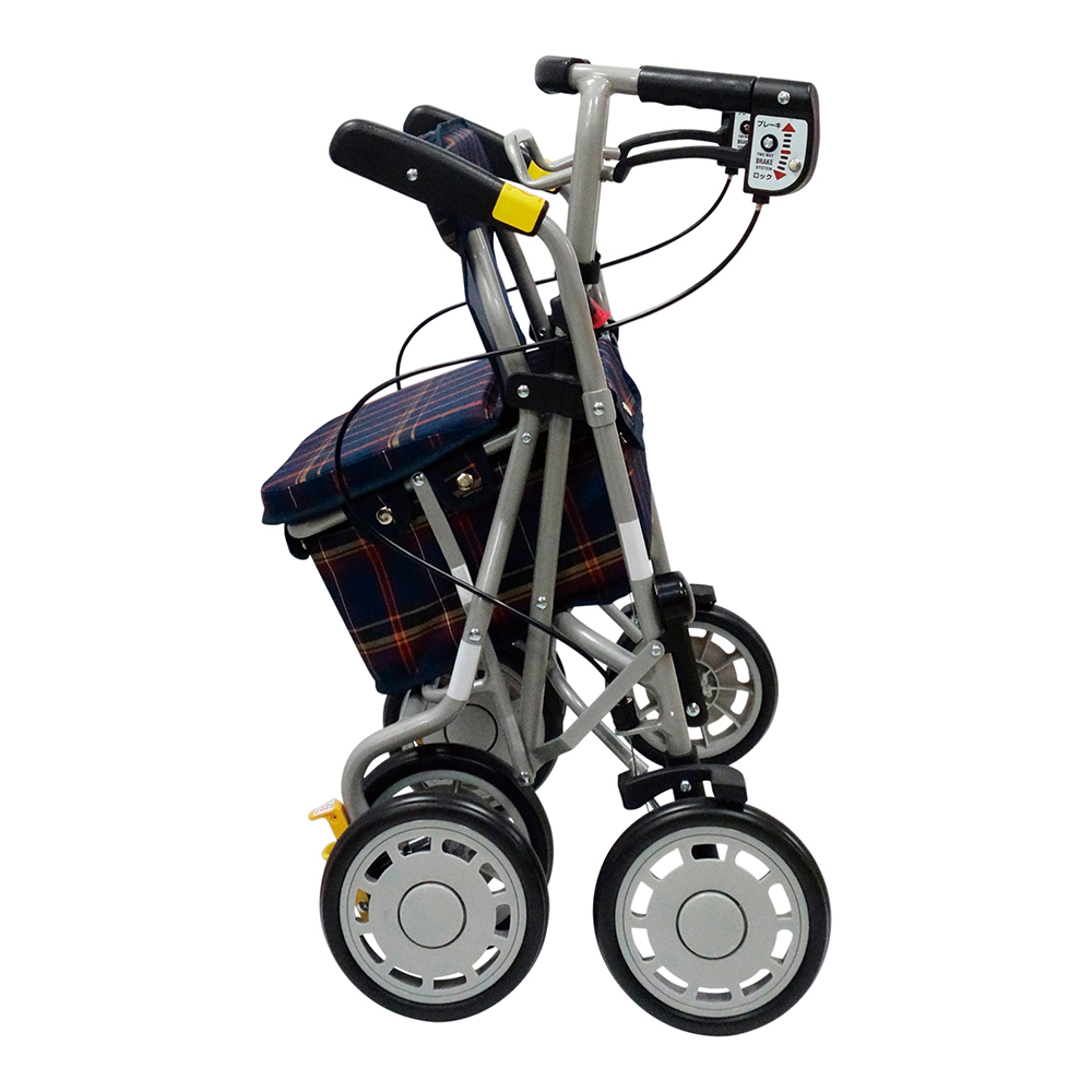 ●便利で多機能なBOXタイプで、カゴ受けを使用すれば買い物カゴを座面に載せることも可能です。●握れる部分が2か所あり、ブレーキとストッパ一体型システムなので操作がしやすいです。●折りたためて自立し、持ち運びも可能です。●3WAYキャスターにより方向転換もスムーズで、固定・左右各60度・360度の設定が可能です。●サイズ(mm):550×690×850~940●材質:本体/アルミニウム(一部スチール・粉体塗装)、タイヤ/EVA、ホイル/PP、バッグ/(花柄ドットエンジ)ポリエステル・ビニールレザー・(格子NB)ポリエステル●折りたたみ時サイズ:約550×480×770mm●座面サイズ:約320×220mm●座面高:約430mm●高さ調節:4段階(ピッチサイズ約30mm)●ハンドル高:約840~930mm●キャスター:前輪/Φ約180mm(固定・左右各60度・フリー)、後輪/Φ約180mm●傘受け付き●重量:約7kg●耐荷重:75kg●バッグ外寸法:約300×310×190mm●バッグ載荷重:10kg