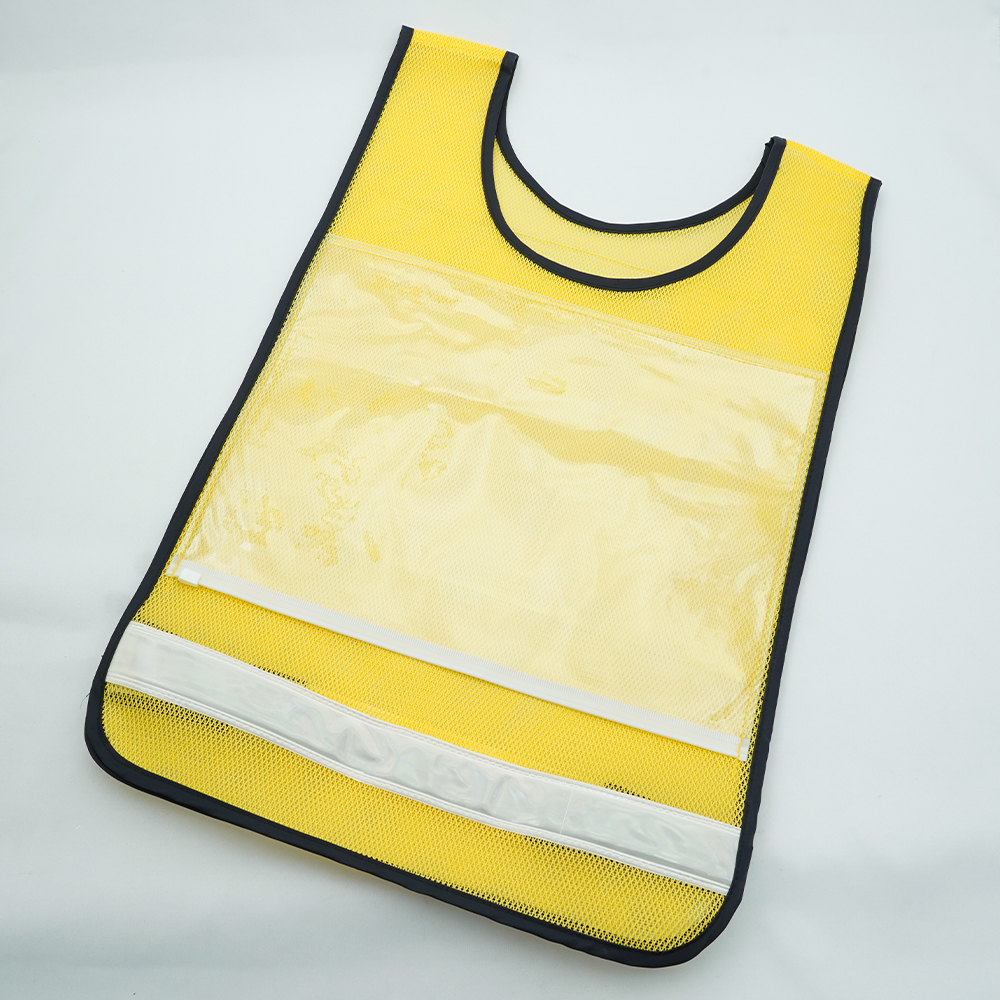 ●A4クリアファイル付きメッシュベスト●メッシュ生地のため通気性に優れています。●反射材付きですので、夜間パトロールの安全対策にも利用できます。●色:イエロー●材質:ポリエステルメッシュ生地●サイズ:本体/フリー(着丈/530mm、ウエスト/800~1100mm)