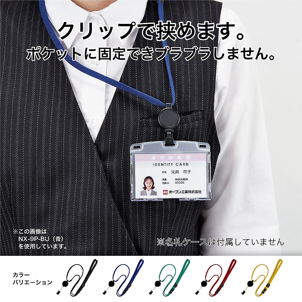 ●片手でカンタン操作、便利なリール式●裏面のクリップで、ポケットに固定ができます。●名札が裏返らず、常に正面を向きます。●強く引っ張ると、ひもが外れる安全装置付きです。●リールクリップ・フック式●ストラップ色:黄●材質:ストラップ/再生PET●テープ幅×全長(ストラップ円周):約10×900mm●最大リール長:約600mm●長さ調節機能・安全装置付●※病院名等の名入れも可能です(100本~)。別途お問い合わせください。