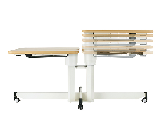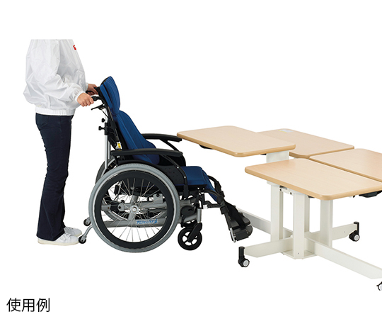 ●個別に高さを調整することによって利用者の自立支援と介助者の負担軽減が可能な1本脚の昇降テーブルです。●4つ角にテーブルの脚がないため車椅子でのアプローチがスムーズです。●★利用者一人ひとりに最適なテーブルの高さにかんたんに合わせることができ、ご自分での食事がしやすくなります。●★レバーを操作して無段階調節ができ、低床車いすからリクライニング車いすの肘掛高に対応します。●幅×奥行×高さ(mm):1525×925×610~835●重量(kg):83●材質:天板/メラミン化粧板、フレーム/スチール(粉体塗装)●高さ調節:天板下585~810mm(無段階調節)●天板厚:25mm●キャスター:Φ50mmキャスター(4輪ストッパー付き)●誤作動防止ロック付き●天板と天板の間:30●組み立て式(要工具)●※運送費・搬入費・据付費・組立費等が別途必要です。お問い合わせください。