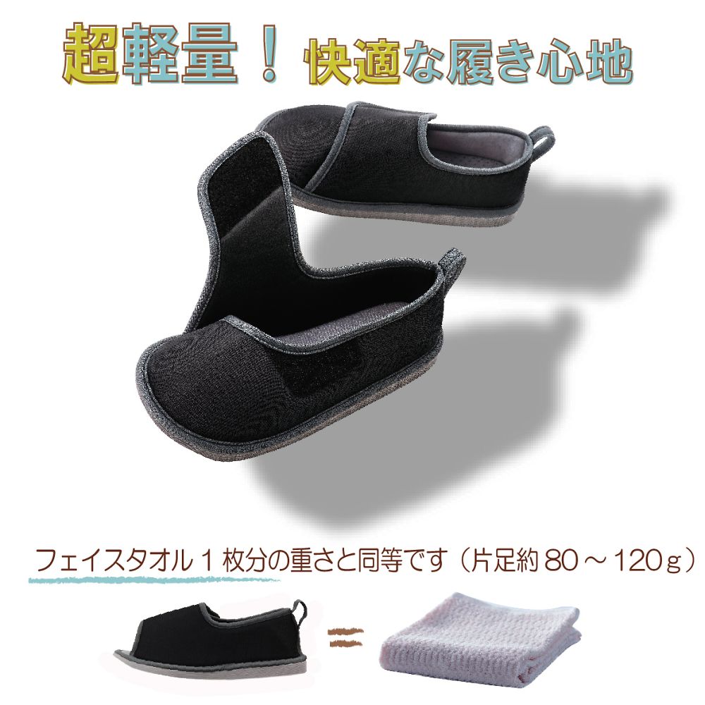 ●ちょっとした段差や滑りやすい床での転倒予防に配慮したシューズです。●脱ぎ履きがしやすい面ファスナー式です。●色:ブラック●サイズ:S(21.0~22.0cm)●素材:本体/ポリエステル、中敷/ポリエステル・PVC(塩化ビニル樹脂)、底面/EVA、底面滑り止め/ゴム