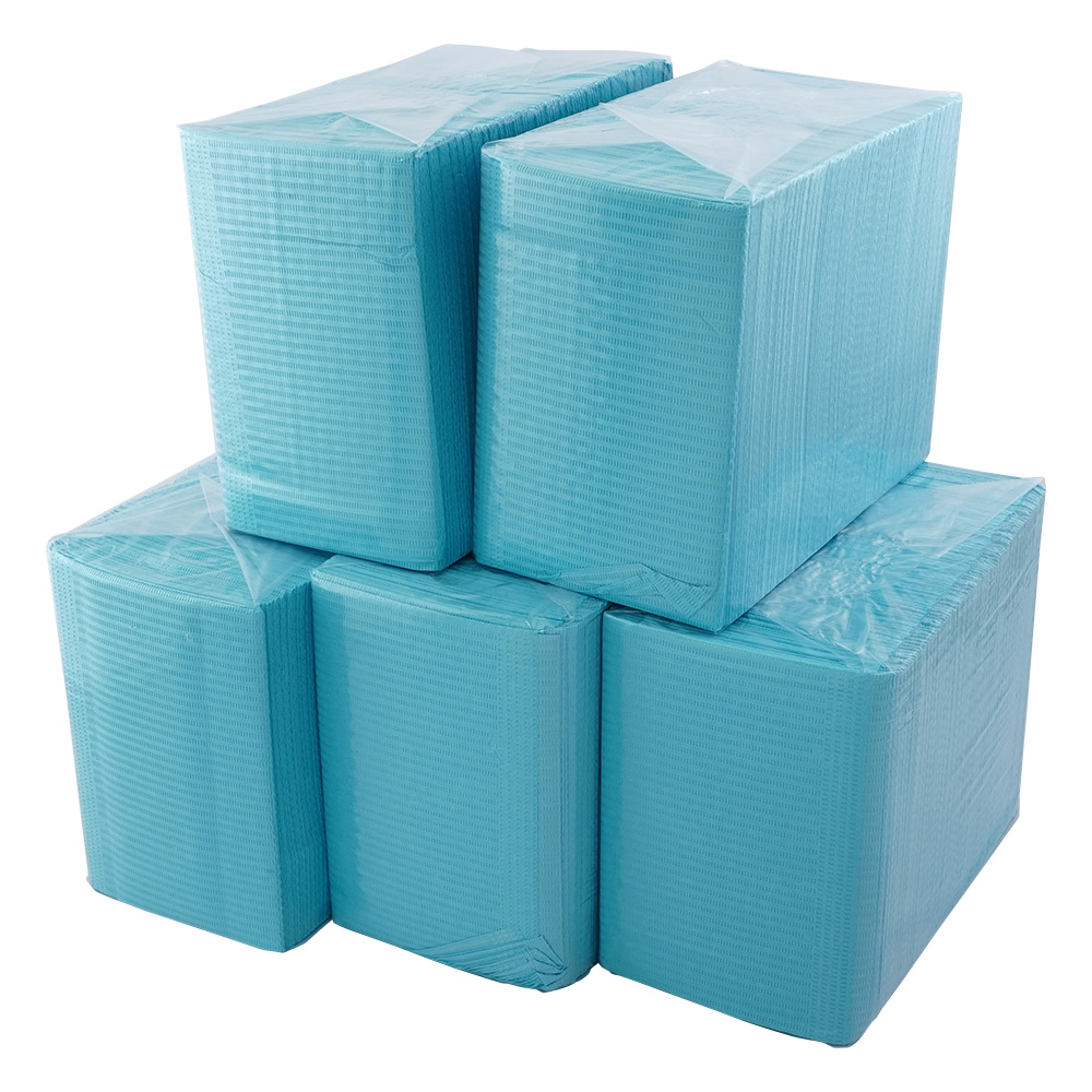 ●エンボス加工で吸水性の高いペーパーエプロンです。●3層構造で防水加工になっています。●サイズ(mm):335×455●色:ブルー●入数:1箱(500枚入)●材質:紙+PE(ポリエチレン)フィルム