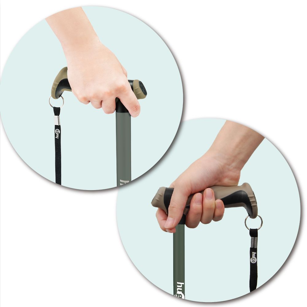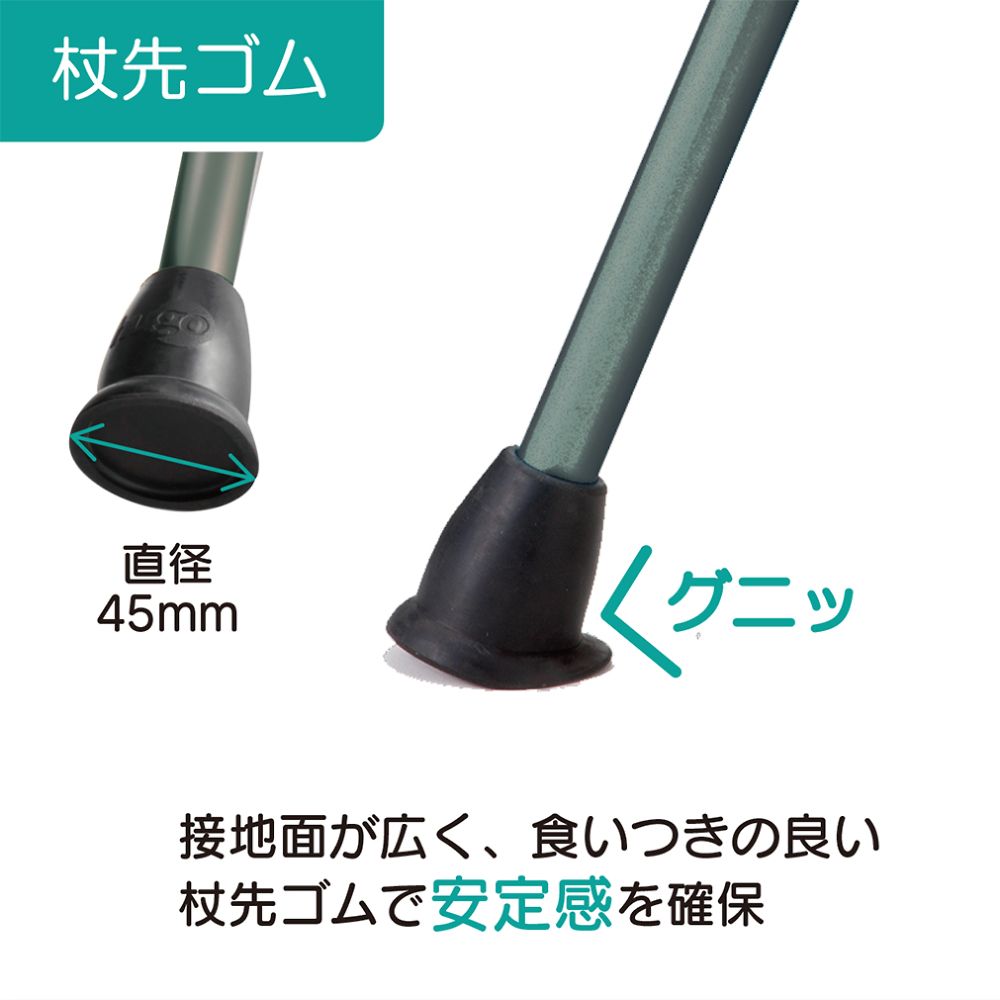 ●左右どちらでも握りやすいグリップ形状です。●クッション付きのグリップが手にかかる衝撃を和らげます。●杖先ゴムが裾広の形状で接地面への食いつきが良く、安定性に優れています。●色:グレー●材質:シャフト/アルミニウム、グリップ/熱可塑性エラストマー(TPR)・PP(ポリプロピレン)、ストラップ/ナイロン、杖先/天然ゴム●全長:680~960mm(25mm間隔・12段階調整)●シャフト先端部径:Φ19mm●重量:395g●対応身長(目安):130~186cm